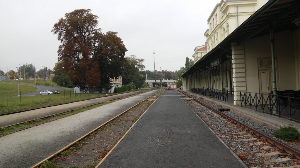 Päivä siis alkaa sillä, että raitiovaunu lipuu pysäkille Hradčanská. Tätä ennen on kannattanut ostaa majoituksen sijainnista riippuen joko kaksi tai kolme kertalippua tai kokonainen yhden päivän lippu. Jos reissu on pitempi niin tottakai kannattaa siinä vaiheessa hankkia pitempi tiketti. Hradčanskálta on hyvä kävellä yhteen Prahan kulttipubiin, eli Dejvická Nádražkaan, joka löytyy raiteiden toiselta puolen. Sisäpuolelta pubi ei ole kovin kaksinen, mutta siinä on tiettyä vääränlaista hohtoa. Suosittelen kuitenkin vain ostamaan oluen sisältä ja menemään pubin pihalle juomaan sen. Etenkin syksyllä piha ja sen pöydät ovat mukavan tyhjät ja lehtien peitossa, mutta muut vuodenajat eivät ole poissuljettuna nekään. Vieressä kulkee käytössä oleva junarata, joten juniakin voi bongata. Olut ei täällä paljoa maksa, viimeksi hinta oli 24 korunaa, eli alle 0,95€. Olut saattaa tulla rikkinäisessä lasissa, mutta olutromantikkoa tämä ei haitanne.