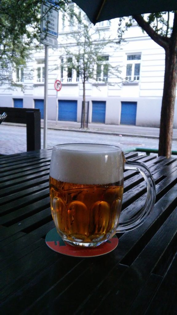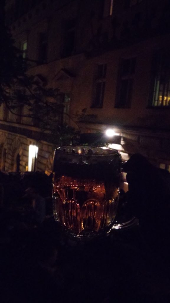 Vain 5 minuutin kävelymatkan päässä sijaitsee U Vystřelenýho oka. Tämä paikka on ilmeisesti yksi ensimmäisiä vapaita oluenjuontitiloja vallankumouksen jälkeen. Olut on täällä Urquellia tai Gambrinusta. Tässä vaiheessa iltaa molemmat käyvät. Pubi on mukavan anarkistinen sisältä ja ulkopuolella istutaan orrella. Täällä on hyvä ottaa niin monta olutta että päivä tuntuu menestykseltä. Kannattaa kuitenkin huomioida että pubin vierestä ei kulje raitiovaunua eikä metroa vaan vain 1 bussi, joten majoituksen sijainti kannattaa taas ottaa huomioon. Tänne tämä postaus jättää kuitenkin lukijan nyt siemailemaan kumouksellisia oluita. Toivottavasti päivä oli maukas!