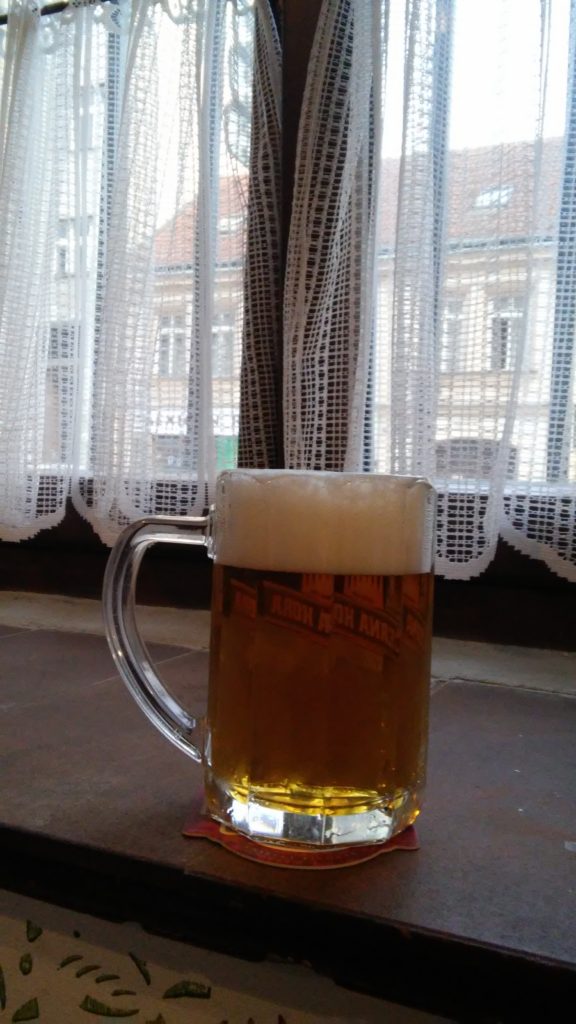 Kellonajasta ja viikonpäivästä riippuen seuraava kohde voi olla joko U Veverky tai Krkonošská Hospůdka. Tässä postauksessa oletetaan että kyseessä ei ole viikonloppu, ja koska kiertoajelu on vasta alussa niin kello on lähempänä puoltapäivää kuin puoltayötä. Tästä syystä nyt kuljemme pubiin nimeltä U Veverky. Krkonošská Hospůdka on nimittäin auki vain viikolla, ja aukeaa klo 17. U Veverky aukeaa kuitenkin jo klo 11, joten sinne siis. U Veverky on ehkä Prahan paras paikka nauttia Pilsner Urquell, eli paikalliseen malliin Plzen. Tai Prazdroj. Urquell eli Plzen tulee täällä tuoppiisi tankista ja sen vaahto on taivaallisen pehmeää ja se pysyy tuopissa kauan ja jättää legendaariset läikät hävitessää. Rapeaa, kultaista ja karamellimaista. Prahan ehdotonta TOP-2 Pilsneriä. Koska nyt oletamme että on lounasaika, täällä kannattaa syödä ja ehkä jopa käyttää hyväksi Tsekinmaan lounastarjoukset. Lounas kun irtoaa todella halvalla. Ruoka U Veverkyssä (eli oravan luona) on ehtaa perinteistä Tsekkimättöä, eli nälkä täällä ei jää.